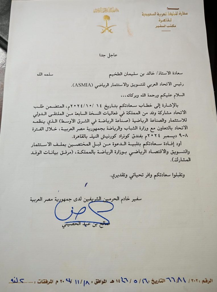 موافقة المملكة العربية السعودية على المشاركة في الملاقى الدولي للاستثمار والصناعة الرياضية