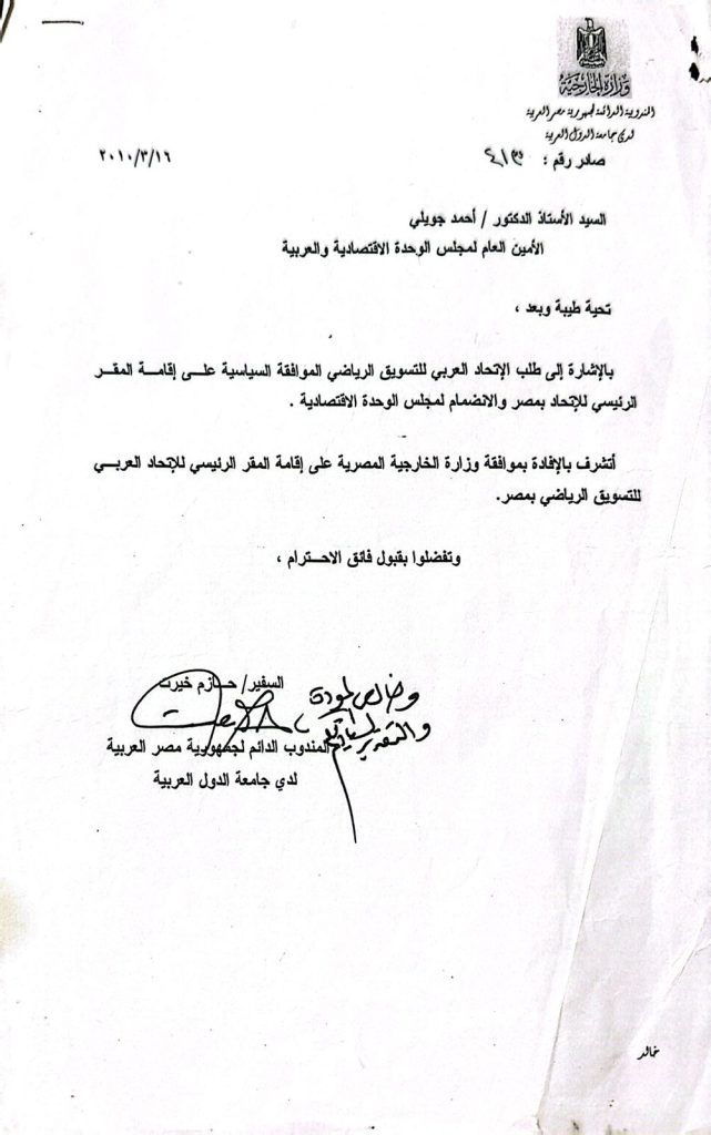 موافقة الحكومة المصرية على استضافة مقر الاتحاد العربي للتسويق والاستثمار الرياضي