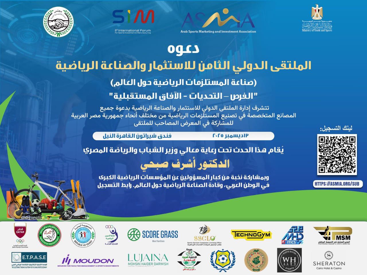 وذلك تمهيدًا لانطلاق الملتقى والمعرض الدولي الثامن للاستثمار والصناعة الرياضية، المقرر افتتاحه رسميًا في 12 ديسمبر 2025 بفندق شيراتون القاهرة على ضفاف نهر النيل.